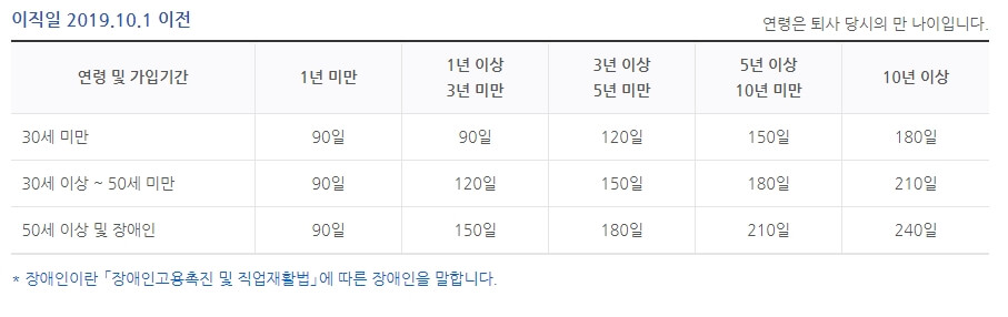 (이직일이 2019.10.1 이전은 퇴직당시 최저임금법상 시간급최저임금의90%×1일근로시간(8시간))