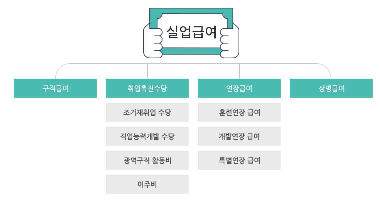 | 특별연장급여 | 실업급증 등으로 재취업이 특히 어렵다고 인정되는 경우 고용노동부 장관이 일정한 기간을 정하고 동기간 내에 실업급여의 수급이 종료된 자 |