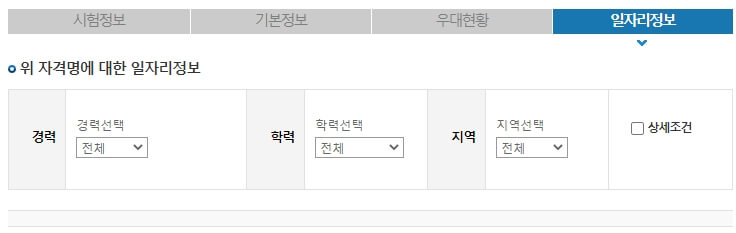 이런 조경기능사 자격증 취득을 통해서 구인구직 할 수 있는 일자리 정보까지 함께 확인 할 수 있습니다. 경력, 학력, 지역에 조건을 선택하고 검색 버튼을 클릭하시면 됩니다.