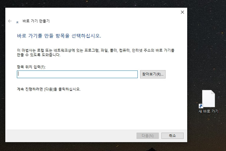 위에서 복사한 진도군청 벼룩시장 주소를 해당 항목에 입력하시면 됩니다. 그리고 나서 다음 버튼을 클릭해주시면 됩니다. 해당 방법은 홈페이지 뿐만아니라 해당 컴퓨터 내에서 제작할 수 있는 윈도우 기본 기능입니다.