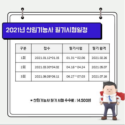 해당 자격증에 시험에 경우 1년에 주로 3~4회에 정기 시험이 있습니다. 2021년 산림기능사에 시험일정은 다음과 같이 구성되어 있습니다. 우선 필기 시험을 합격해야 다음 실기 시험이 가능하기 때문에 산리기능사 필기 시험 일정 부터 확인해보세요.