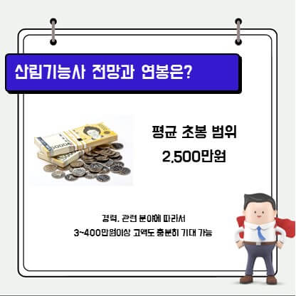 취업을 준비함에 있어 고려해야하는 조건이 상당히 많이 있습니다. 그 중에서 가장 중요한 조건은 아무래도 연봉 기준이 아닐까 싶습니다. 산림기능사 자격증 취득을 통해서 취업에 성공하게 되면 수령하는 초봉 평균 연봉은 다음과 같습니다.