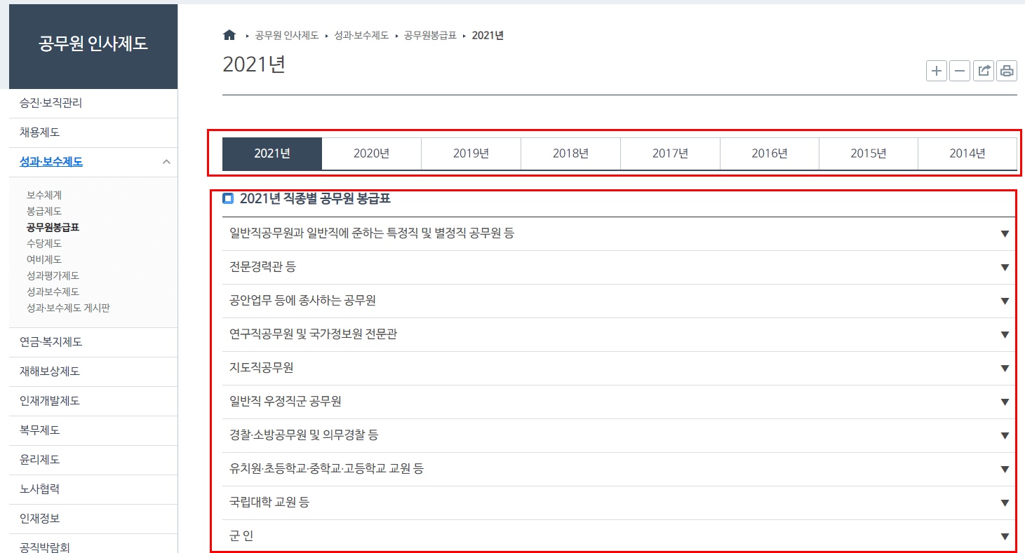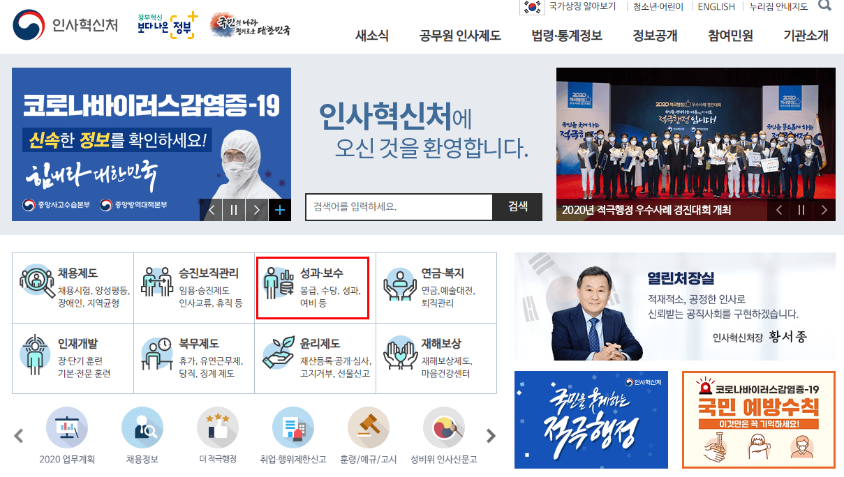 그렇기 때문에 공무원 월급표를 결정하고 공시하는 전문 기관을 통해서 확인하는 것이 가장 정확합니다. 그리고 해당 기관은 인사혁신처 입니다.
