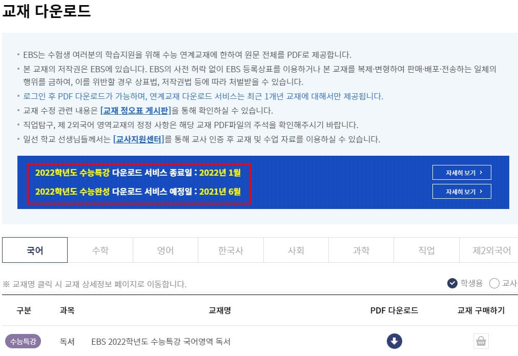 2022수능특강 PDF 다운로드 받기 방법과 필요 사항