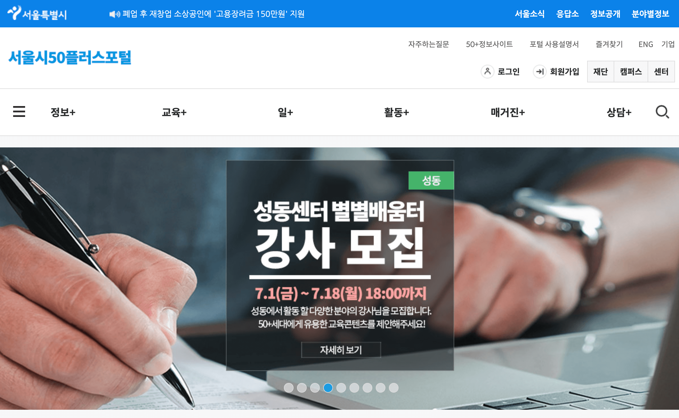 해당 방법은 서울이라는 특정 지역에 한정적입니다. 하지만 사이트 메인에서 확인할 수 있는 것처럼 시니어 분들을 위한 다양한 서비스를 제공하고 있습니다.