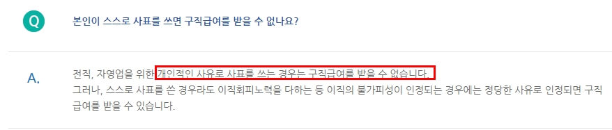 ※ 구직급여는 실업의 의미를 충족하는 비자발적 이직자에게 수급자격을 인정하는 것이지만, 자발적 이직자의 경우에도 이직하기 전에 이직회피노력을 다하였으나 사업주측의 사정으로 더 이상 근로하는 것이 곤란하여 이직한 경우 이직의 불가피성을 인정하여 수급자격을 부여함